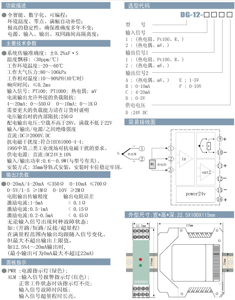 DG-12-11AD,DG-12-11ED,DG-12-12BD,DG-12-21FD,DG-12-22AD,DG-12,溫度信號一比一變送器