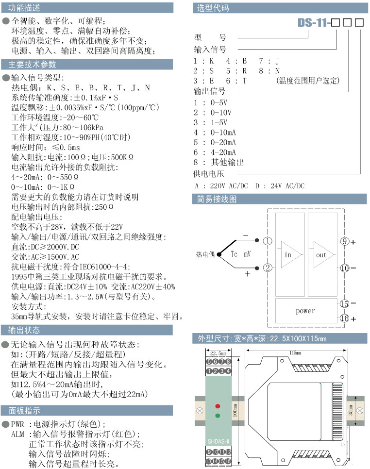 DS-11-11A,DS-11-16D,DS-11-31D,DS-11-36A,DS-11-56D,DS-11-83D,DS-11,熱電偶信號(hào)變送器