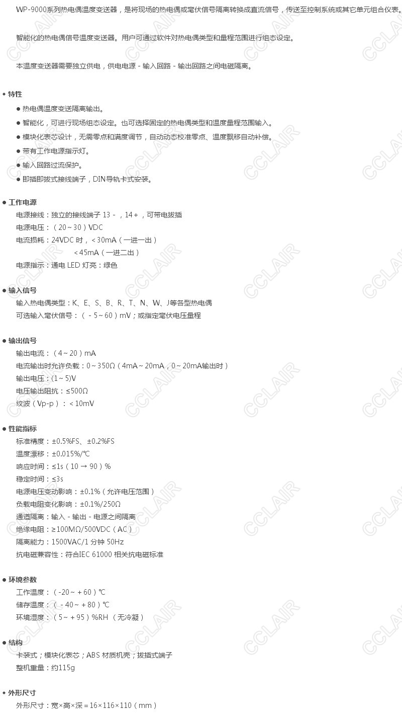 WP-9071,WP-9072,熱電偶溫度變送器