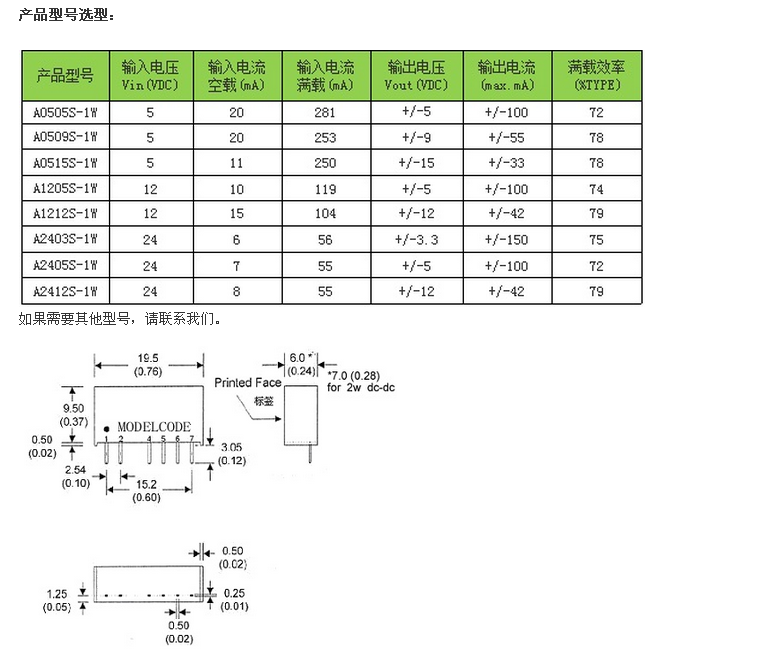 A0505S-1W,A0509S-1W,A0515S-1W,A1205S-1W,A1212S-1W,A2403S-1W,A2405S-1W模塊
