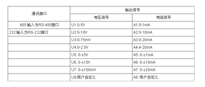 選型舉例2: 型號(hào):WJ31-232-U1   表示RS-232接口,0-5V信號(hào)輸出