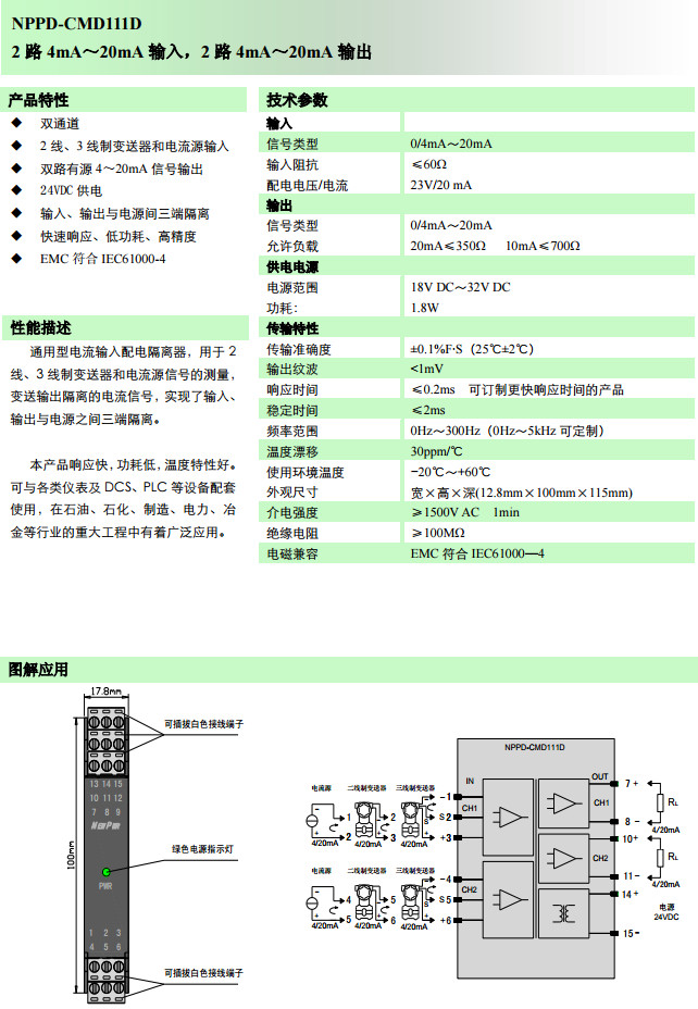 NPPD-CMD111D,電流輸入配電隔離器