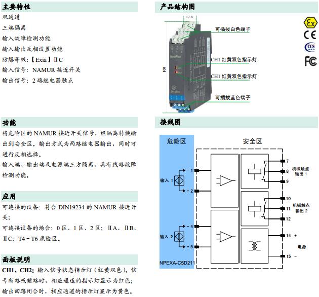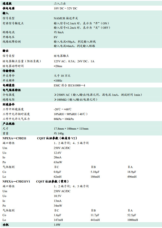 NPEXA-C5D211,NPEXA-C5D211V1,檢測(cè)端隔離式安全柵