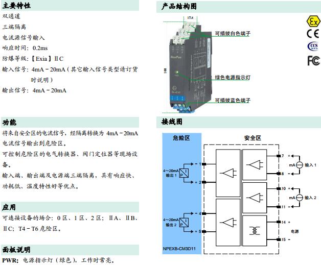 NPEXB-CM3D11,操作端隔離式安全柵