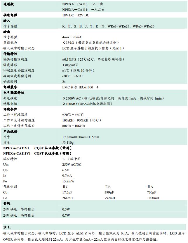 NPEXA-CA11,NPEXA-CA111,檢測端隔離式安全柵