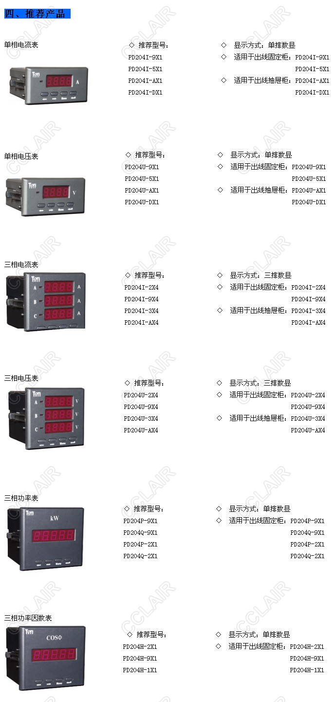 PD204I-DX1,PD204U-DX1,PD204I-AX4,PD204U-AX4,PD204Q-2X1,PD204H-1X1,X數(shù)顯電測表