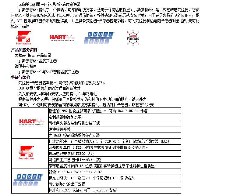 羅斯蒙特644,頭部安裝式和導軌安裝式溫度變送器
