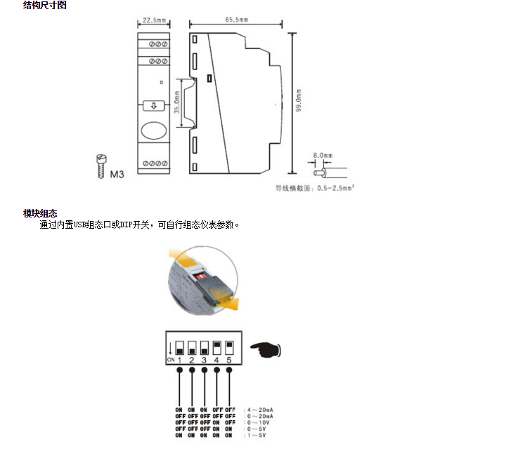 4~20mA/0~20mA/1~5V/ 0~5V/0~10V |