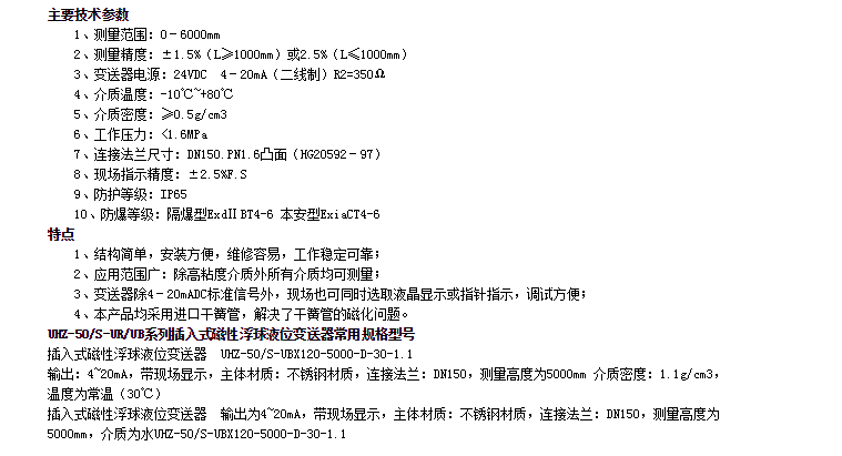 UHZ-50/S-UR,UHZ-50/S-UB,UHZ-50/S-UBX120-5000-D-30-1.1,插入式磁性浮球液位變送器