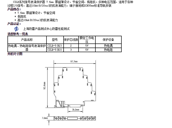 CZLB-5(R2),CZLB-5(R3),信號(hào)浪涌保護(hù)器