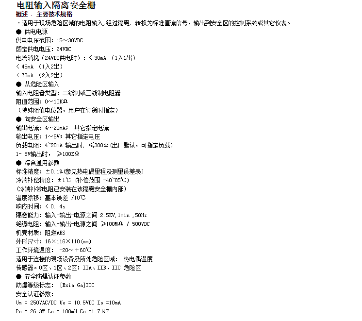 KH-5083,KH-5084,電阻輸入隔離安全柵