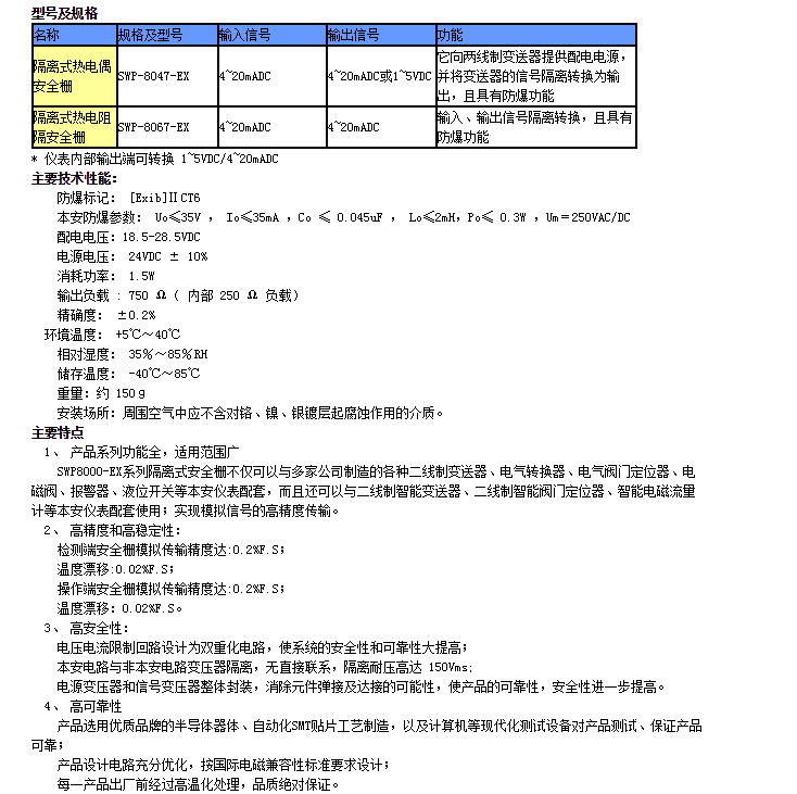 SWP-8047-EX,SWP-8067-EX,隔離式熱電偶安全柵