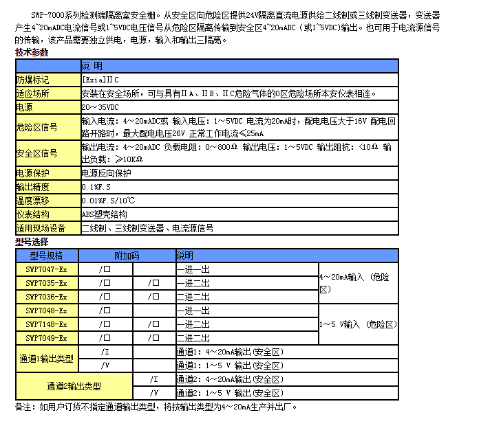 SWP7047-Ex,SWP7035-Ex,SWP7036-Ex,SWP7048-Ex,SWP7148-Ex,SWP7049-Ex,隔離式安全柵