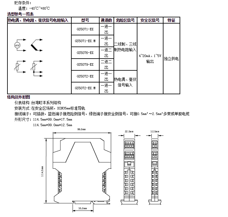 GS5071-EX,GS5071-EX.M,GS5076-EX,GS5079-EX,GS5072-EX,GS5072-EX.M,隔離式安全柵