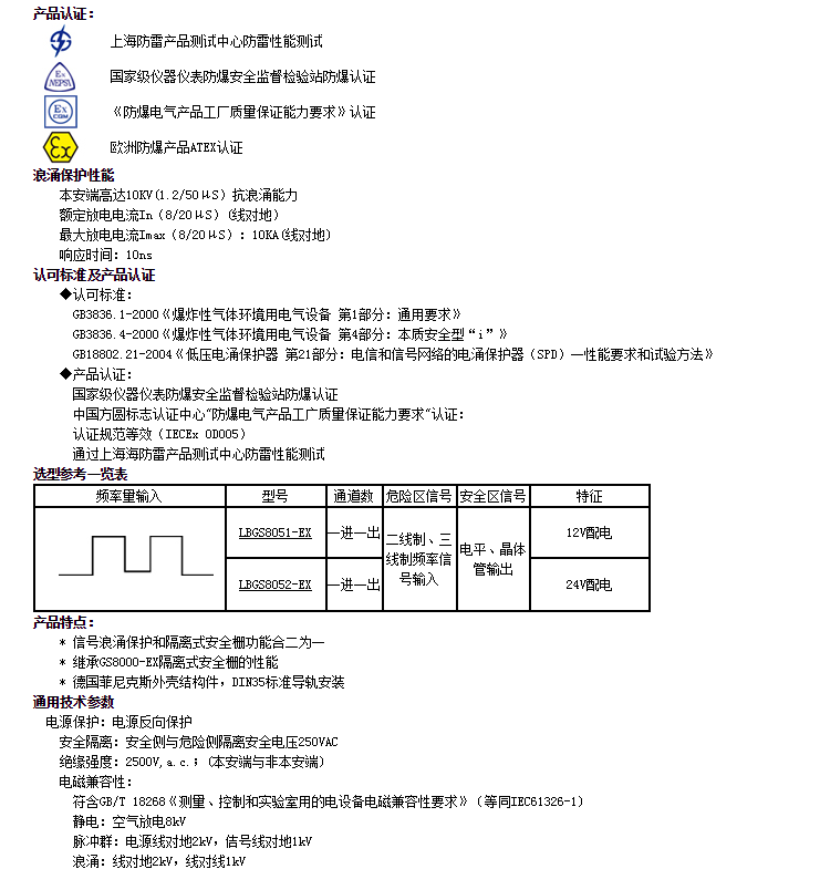 LBGS8051-EX,LBGS8052-EX,頻率量輸入浪涌保護隔離柵