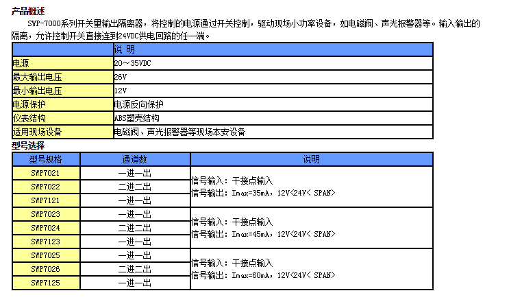 SWP7021,SWP7022,SWP7121,SWP7023,SWP7024,SWP7123,開關量輸出隔離器