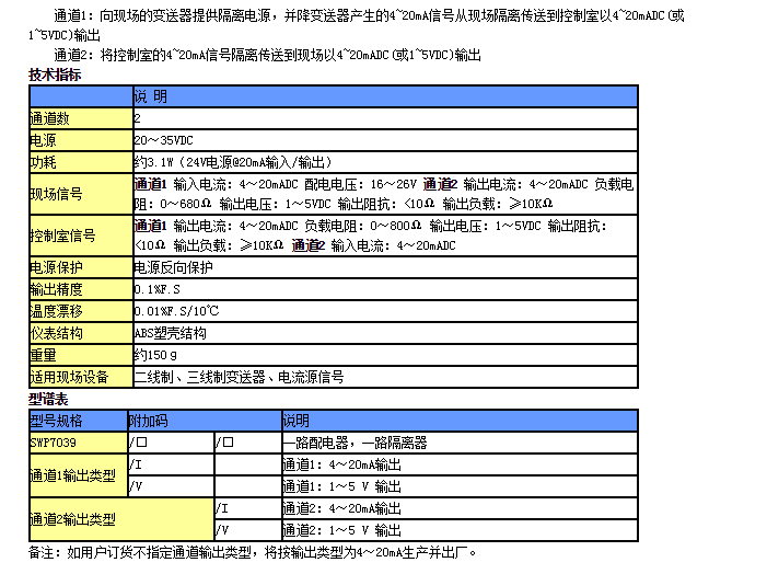SWP7039/I/I,SWP7039/I/V,SWP7039/V/I,SWP7039/V/V,隔離器/配電器