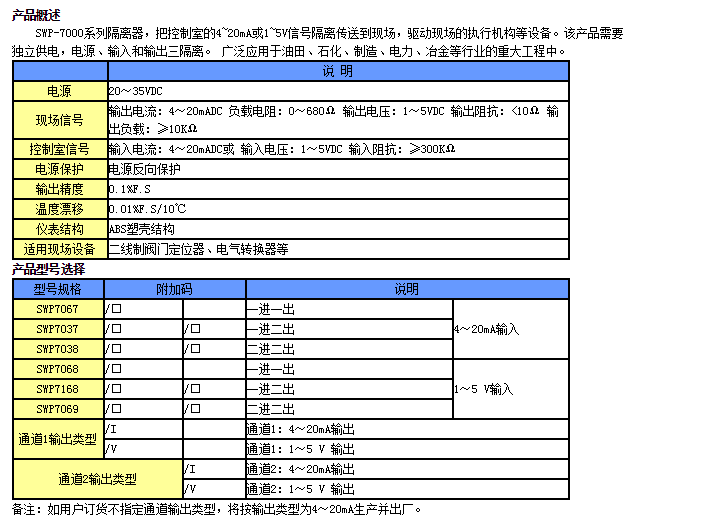 SWP7067,SWP7037,SWP7038,SWP7068,SWP7168,SWP7069,隔離器