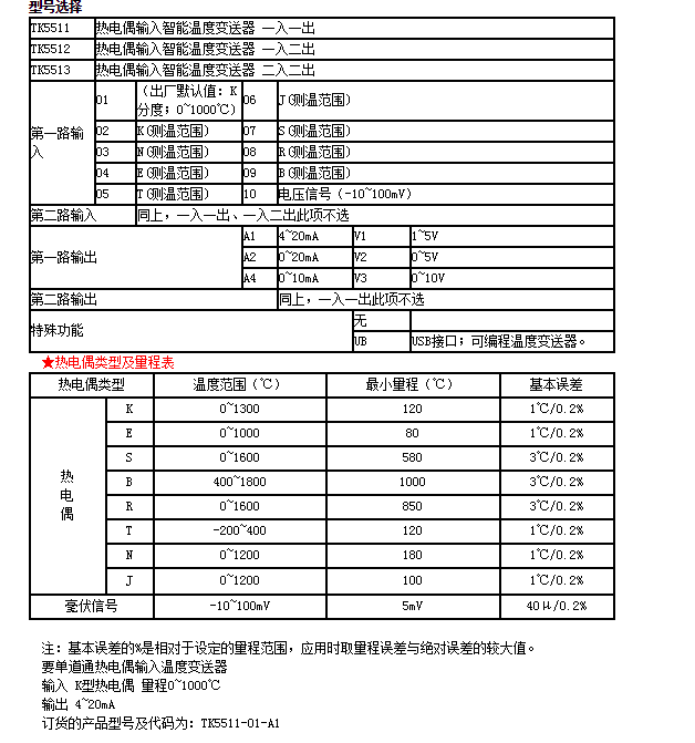 熱電偶: K;E;S;B;R;T;N;W;J 等