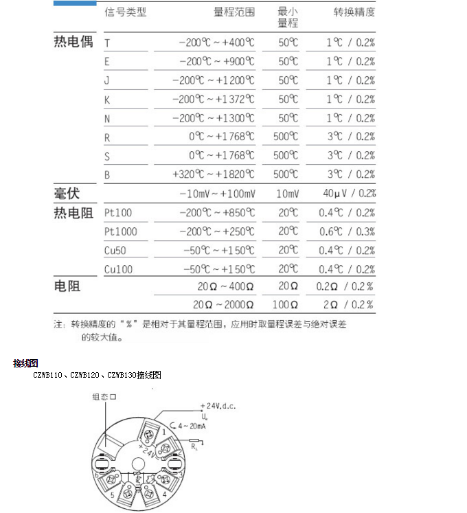※ 用于來自熱電偶、熱電阻、毫伏信號(hào)、電阻的信號(hào)輸入,經(jīng)過隔離變送輸出標(biāo)準(zhǔn)的直流電流信號(hào)4~20mA。