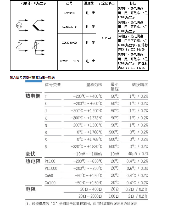 可編程智能化;設(shè)定輸入信號類型和測量范圍