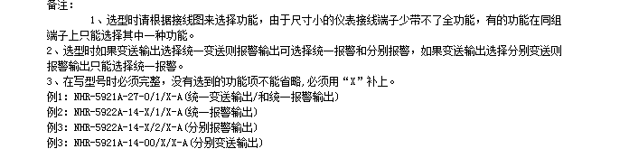 NHR-5920系列多回路臺(tái)式打印控制儀采用先進(jìn)的微處理器進(jìn)行智能控制,集打印、控制及測量顯示于一體,本機(jī)包含多路測量顯示控制儀的全部功能,增加了現(xiàn)場打印記錄功能,可以自動(dòng)定時(shí)打印或手動(dòng)即時(shí)打印各通道當(dāng)前測量值,適用于需在要進(jìn)行多測量點(diǎn)巡回檢測的系統(tǒng)。 雙屏LED數(shù)碼顯示,PV顯示測量值,SV顯示當(dāng)前通道號(hào)。 可巡回檢測8~16路測量信號(hào),各輸入通道測量信號(hào)互不干擾。 具備36種信號(hào)輸入功能,各通道可同時(shí)輸入不同的信號(hào)類型;0.2%級(jí)測量精度。 報(bào)警方式可選擇8路或16路“統(tǒng)一報(bào)警輸出”、“16路分別報(bào)警輸出”,“統(tǒng)一報(bào)警輸出”時(shí)通過參數(shù)設(shè)置可選擇帶記憶報(bào)警和不帶記憶報(bào)警功能,儀表面板帶LED報(bào)警指示燈。 變送輸出方式可以選擇“統(tǒng)一變送輸出”、“8路分別變送輸出”,“按指定輸入通道的采樣值變送”、統(tǒng)一變送、“16路采樣值加權(quán)平均變送”、“16路輸入最大值變送”、“16路輸入最小值變送”。 儀表數(shù)據(jù)刷新周期2秒/16路。 儀表帶RS232C打印功能,具有手動(dòng)打印、定時(shí)打印、報(bào)警打印功能。 帶DC24V饋電輸出,為現(xiàn)場變送器配電。 輸入、輸出、電源、通訊相互之間采用光電隔離技術(shù)。 參數(shù)設(shè)定密碼鎖定,參數(shù)設(shè)置斷電永久保存,具有參數(shù)恢復(fù)出廠設(shè)定功能。