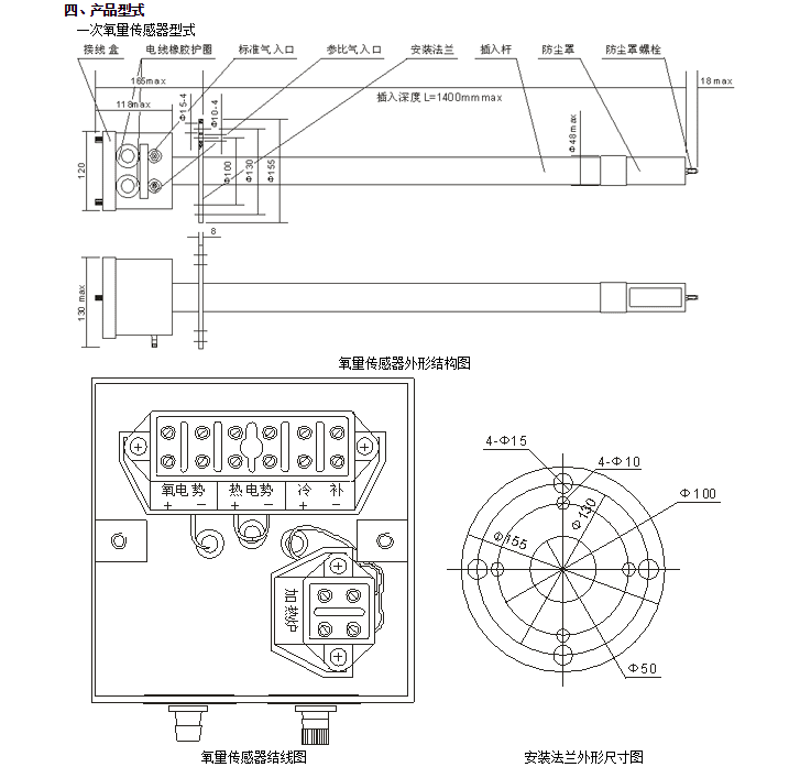 ZO型直插式氧化鋯氧氣含量分析儀一次氧量傳感器采用耐高溫的不繡鋼管,耐腐蝕陶瓷,安裝法蘭,接線盒,防塵罩等材料制成(適用于煙氣溫度≤800℃,二氧化硫SO2 氣體濃度較小的工況場(chǎng)合),可直接插入溫度≤800℃的煙道內(nèi)、法蘭式安裝,進(jìn)行氧氣含量的測(cè)量,以檢測(cè)燃料燃燒的程度和廢氣排放的質(zhì)量;對(duì)于煙道內(nèi)氣體溫度≤1300℃以下的工況場(chǎng)合,因其材質(zhì)不同,使用壽命也不同,訂貨時(shí)必須說明。一般煙氣溫度≤800℃的傳感器,質(zhì)量保證期為十二個(gè)月,使用壽命約二十四個(gè)月;煙氣溫度≤1300℃的傳感器,質(zhì)量保證期為六個(gè)月,使用壽命約十二個(gè)月。質(zhì)量保證期與燃料的材質(zhì)有關(guān),煤燃燒時(shí)產(chǎn)生的有害廢氣濃度較高,腐蝕性強(qiáng)所以使用壽命比較短;天然氣或油燃燒時(shí)產(chǎn)生的有害廢氣濃度較低,腐蝕性弱所以使用壽命比較長(zhǎng)。顯示儀表采用單片微處理機(jī)芯片程序控制,進(jìn)行測(cè)量和顯示、變送(4mA~20mA)輸出、上限、下限設(shè)定控制、各種狀態(tài)顯示(加熱、低溫、超溫、氧電勢(shì)、加熱爐溫度)。能與各種電動(dòng)單元組合儀表、常規(guī)記錄儀及DCS集散控制系統(tǒng)配合使用。質(zhì)量保證期為十二個(gè)月,使用壽命約四十八個(gè)月。