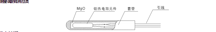 1、鎧裝鉑熱電阻感溫元件:它是由金屬套管,絕緣材料(氧化鎂粉),引線和鉑熱電阻元件組合而成的堅(jiān)實(shí)體。