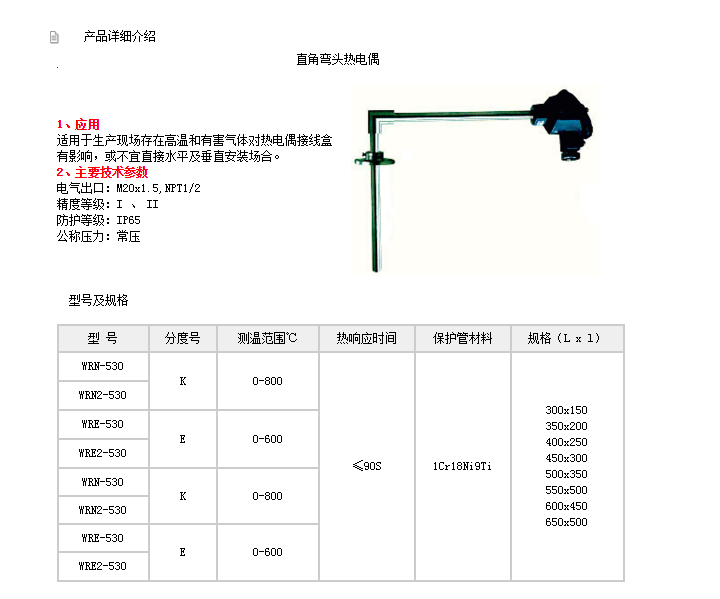 WRN-530,WRN2-530,WRE-530,WRE2-530,WRN-530,直角彎頭熱電偶