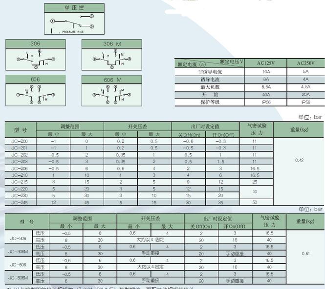 JC200,Jc201,Jc202,Jc203,JC206,Jc210,Jc215,Jc220,JC230,JC245, JC-306,JC-306M,JC-606,JC-606M,壓力開(kāi)關(guān)̴ |