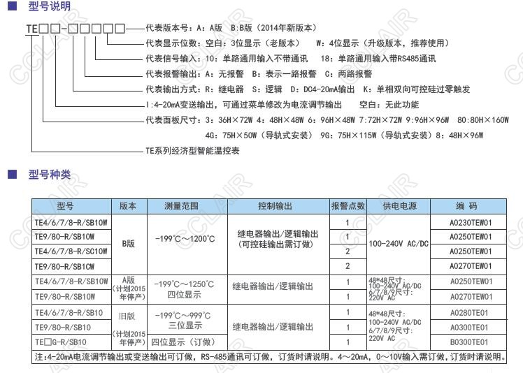 TE4-R10W,TE6-R10W,TE7-R10W,TE8-R10W,TE4-SB10W,TE-W經(jīng)濟(jì)型智能溫控表(升級(jí)B版)