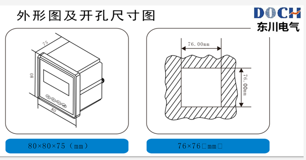 一.數(shù)顯單相電流表 產(chǎn)品概述 80方形 外型:80*80mm 開孔:76*76mm