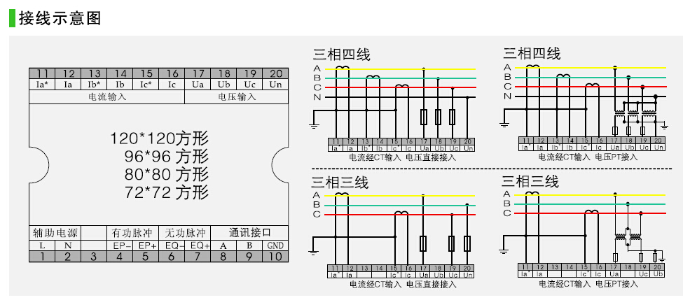 視在功率 有功電能 無功電能(計量)RS485通訊 三排LED數(shù)碼管顯示,96*96mm外形