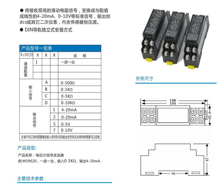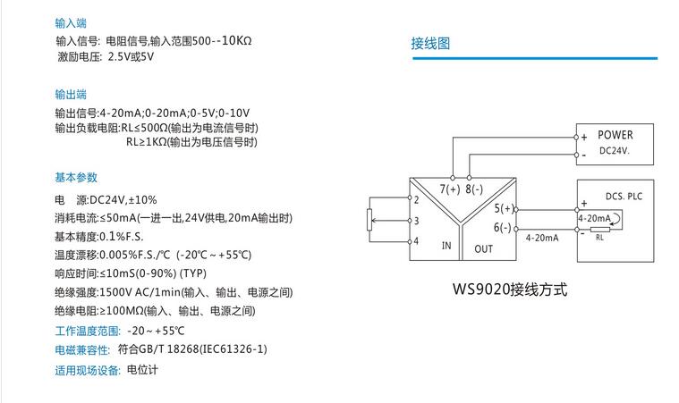 WS9020電位計(jì)變送器 電位計(jì)信號隔離器技術(shù)參數(shù)詳細(xì)介紹:
