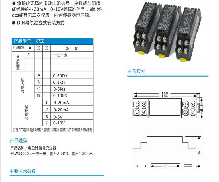WS9020電位計(jì)變送器 技術(shù)參數(shù)詳細(xì)介紹: