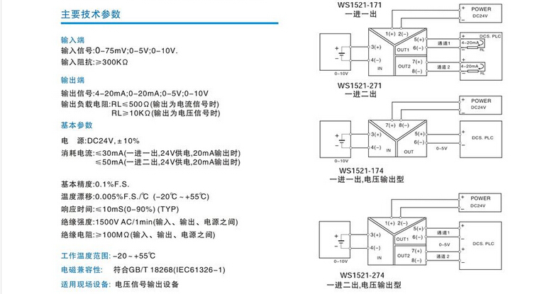 WS1521信號(hào)轉(zhuǎn)換模塊 詳細(xì)技術(shù)參數(shù)及接線方式: