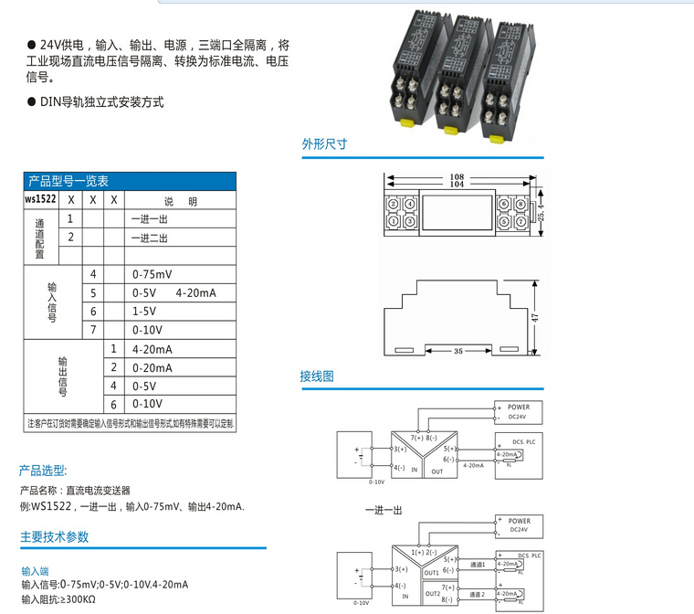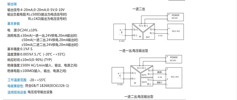 信號隔離器輸出范圍:4-20mA、0-10V、0-20mA等用戶需要的標(biāo)準(zhǔn)信號