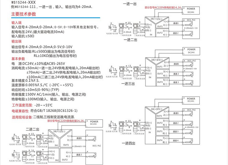 WS15244安全柵,全隔離信號分配器 隔離柵,信號隔離器模塊,安全柵,電流轉(zhuǎn)換模塊。將輸入信號變換為兩路相互隔離的信號,低功耗,低熱量,低漂移,DIN T型導(dǎo)軌安裝