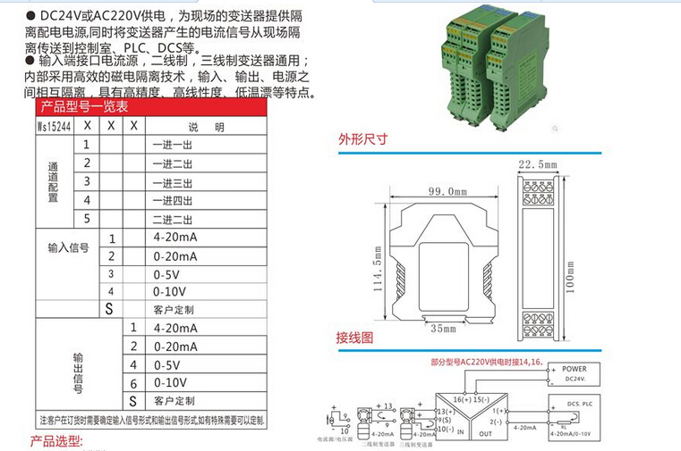 安全隔離柵輔助電源:DC24V 或AC220V, 高精度:0.1%