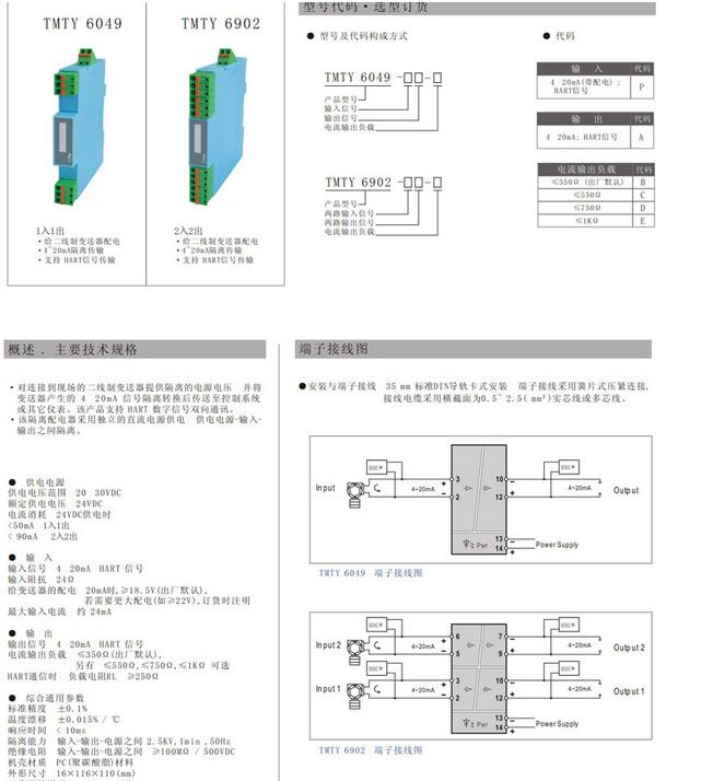 TMTY6049,TMTY6902 電流信號輸入配電隔離器(支持HART)