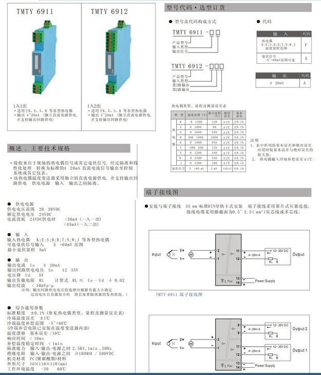 TMTY6911,TMTY6912 ,TMTY6911-FA,TMTY6911-SA,TMTY6912-FA,TMTY6912-SA,熱電偶輸入隔離變送器(支持輸出回路供電)