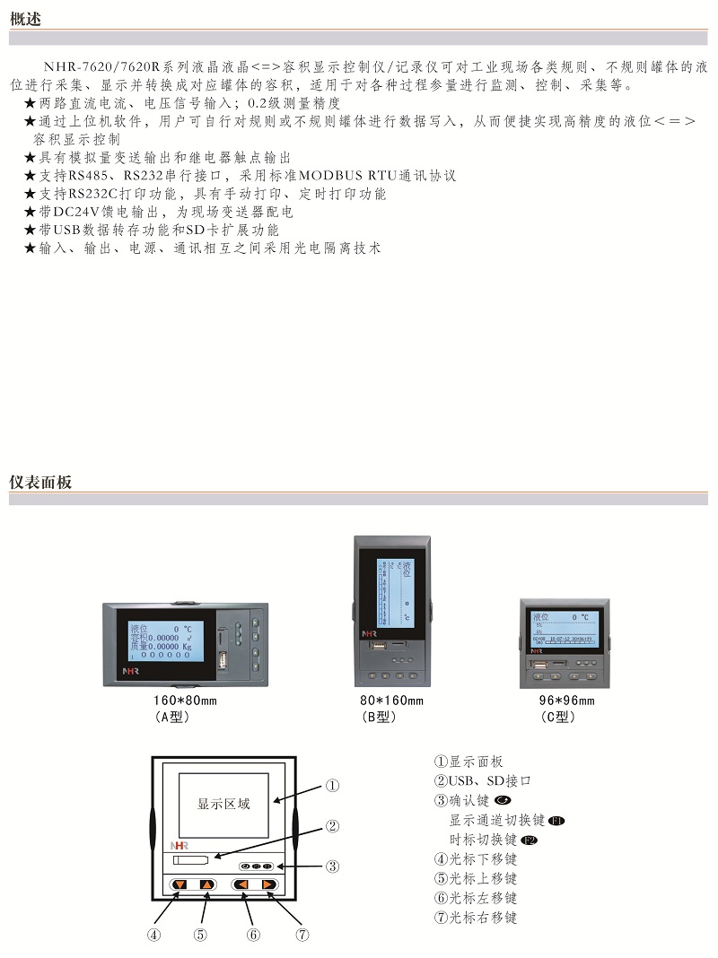 NHR-7620/7620R,液晶液位<=>容積顯示控制儀/記錄儀