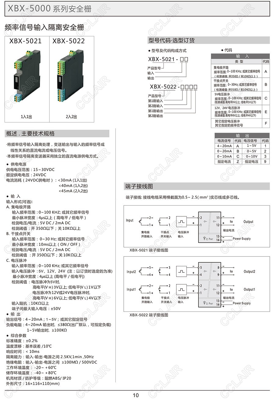 XBX-5021,XBX-5022,XBX-5022-AB2,XBX-5022-BB2,頻率信號輸入隔離安全柵(一入一出、二入二出)