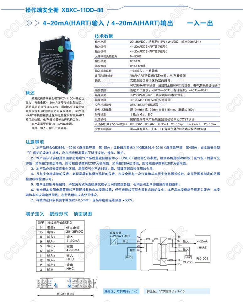 XBXC-11DD-88操作端安全柵模擬量驅(qū)動(dòng)輸出(HART)(一入一出)