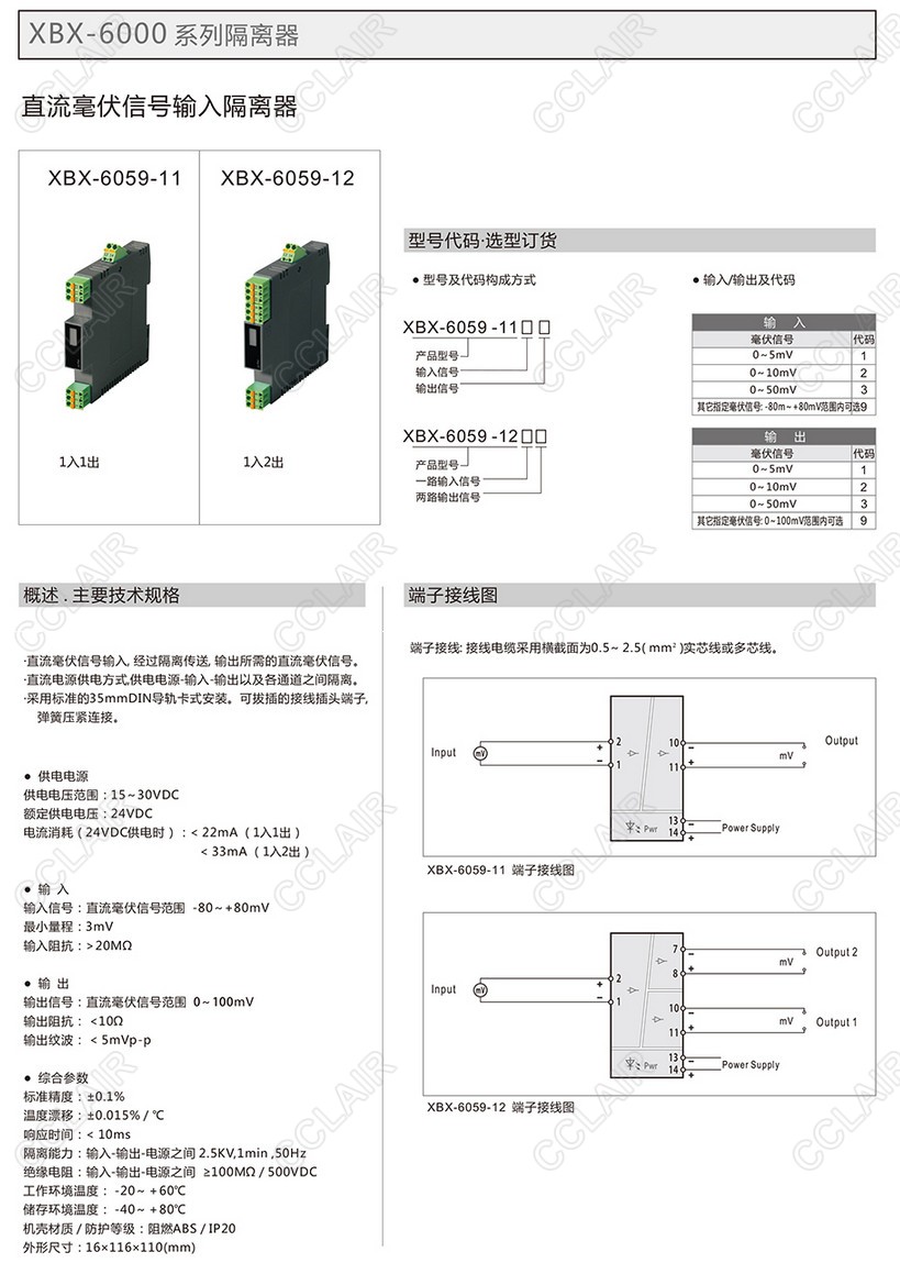 XBX-6059-11,XBX-6059-12,XBX-6059-11-11,XBX-6059-11-22,XBX-6059-11-33,XBX-6059-11-99,直流毫伏信號(hào)隔離器(一入一出、一入二出)