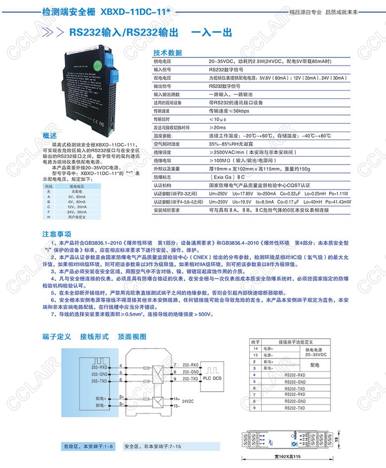 XBXD-11DC-11*RS232入/RS232輸出(一入一出)