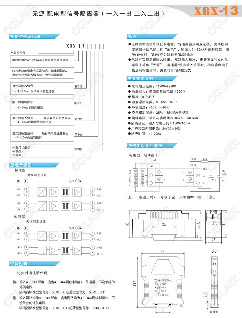 XBX-13,XBX-13-1111,XBX-13-1111T,XBX-13-111,XBX-13-111T,無源配電型信號隔離器(一入一出、二入二出)