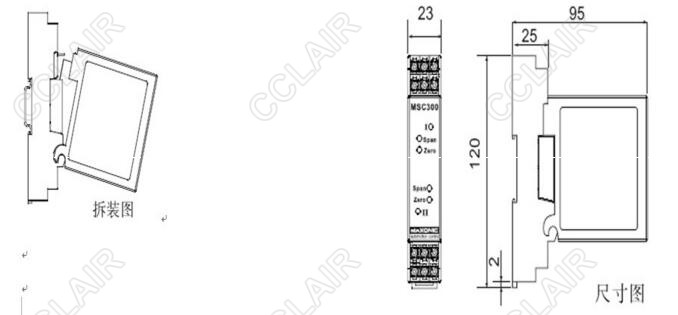 35mm導(dǎo)軌卡裝;主機與底座可以插拔分離 (120mm*95mm*25mm)