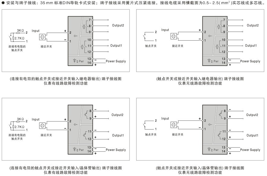可選擇帶有輸入線路故障檢測(cè)功能的開關(guān)量輸入隔離器和沒有線路故障檢測(cè)功能的開關(guān)量輸入隔離器。