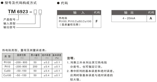 TM6923  熱電阻輸入溫度變送器 支持輸出回路供電,一入一出特性